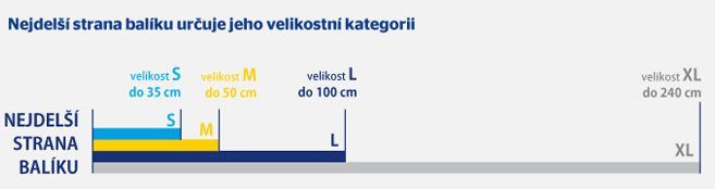 Balíky v současnosti mají označení S, M, L a XL právě podle délky nejdelší strany. Nejmenší balík S smí mít nejdelší stranu maximálně 35 cm a v případě Balíku do ruky stojí 129 Kč. Naopak balík označený jako XL smí mít nejdelší stranu až 240 cm a za stejnou službu si člověk zaplatí 359 Kč.