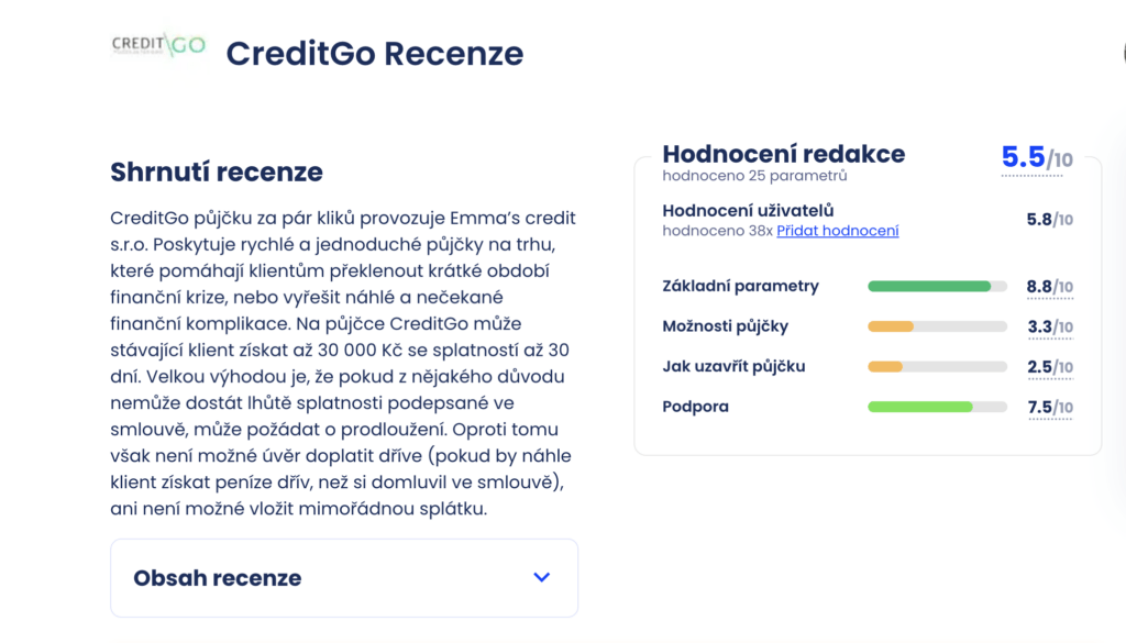 Závěrem lze konstatovat, že CreditGo recenze hodnotí tento produkt jako rychlou a dostupnou půjčku pro specifické situace.
