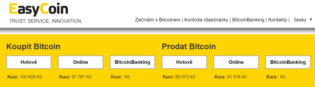 Na směnárně Easycoin je možno kupovat či prodávat Bitcoin pouze za české koruny. Prodávat či kupovat lze hned třemi způsoby:
