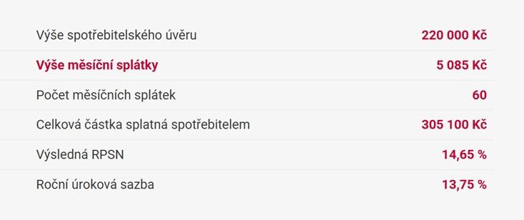 výsledná RPSN 7,19 %, roční úroková sazba 6,96 %