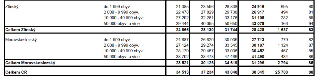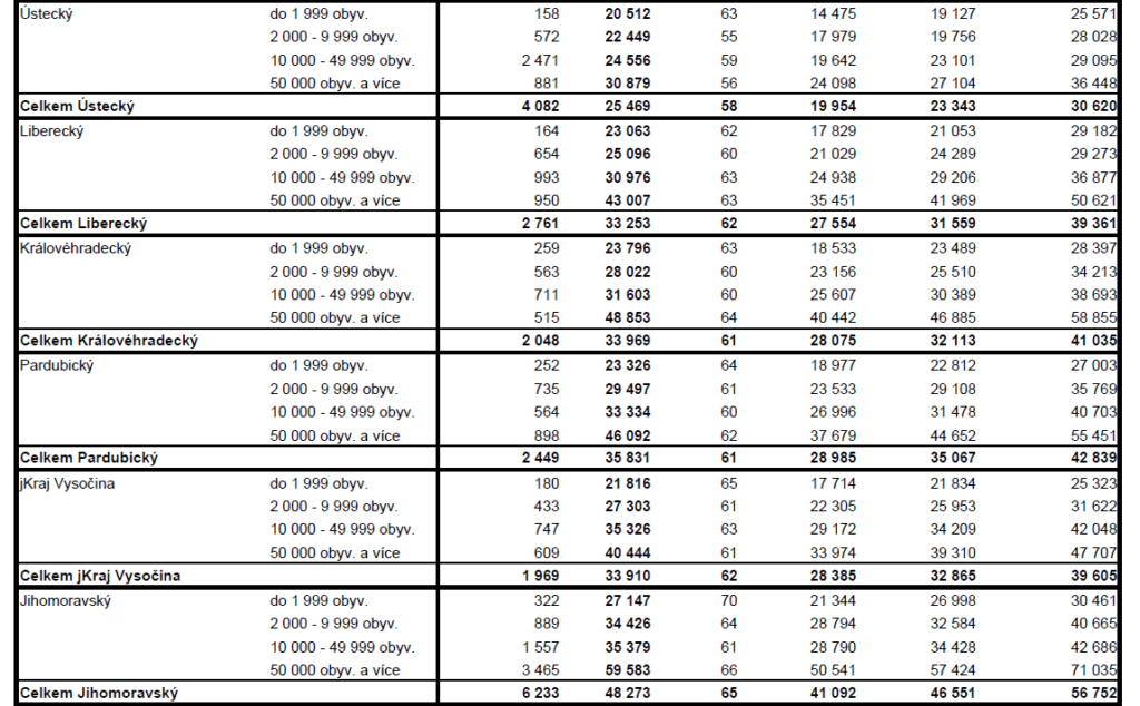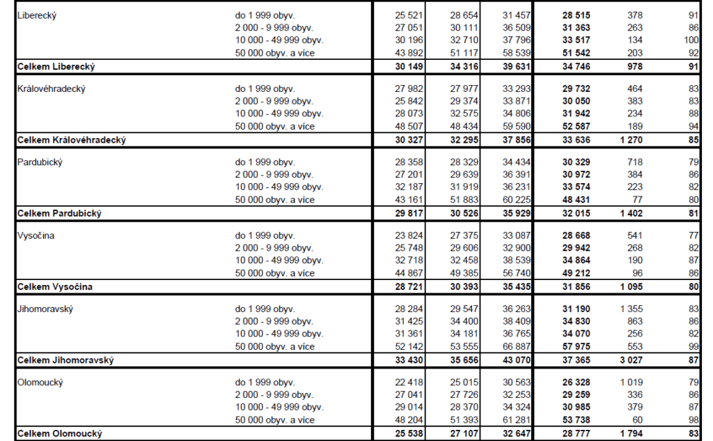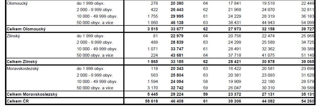 PRŮMĚRNÉ CENY RODINNÝCH DOMŮ V ČR V ZÁVISLOSTI NA VELIKOSTI OBCÍ (v Kč/m2)