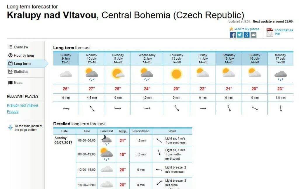 Pokud vám minimální nutná angličtina dělá potíže, můžete pro vyhledání předpovědi počasí Ýr no pro Českou republiku vyzkoušet českou webovou verzi, která vychází z té norské.