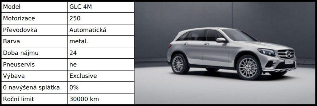 Co ovšem není součástí měsíční splátky je poplatek za sjednání smlouvy o operativním leasingu. Přímo na stránkách Mercedes-Benz nelze dohledat, kolik tento poplatek činí – zřejmě je sdělován až při osobní schůzce. Je tedy potřeba počítat s tím, že kromě měsíční splátky bude ještě nějaký výdaj navíc.