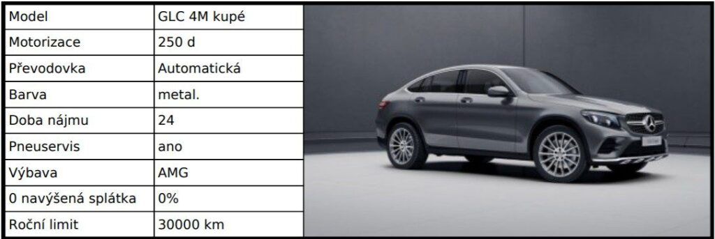 Mercedes-Benz na svých stránkách v současnosti nabízí hned několik vozů na operativní leasing. Pokud by měl někdo zájem i o jiný vůz, bude mu kalkulace vytvořena individuálně.