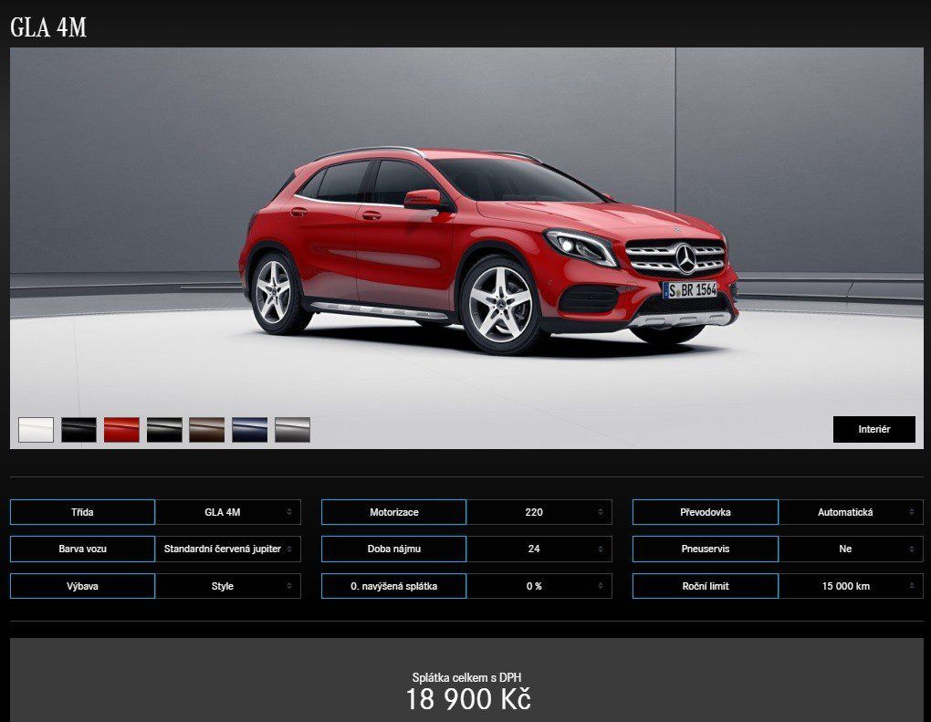 U každého z výše uvedených vozů si lze vybrat mimo jiné barvu vozu, motorizaci, převodovku, roční kilometrový limit aj. Po upřesnění těchto parametrů se zobrazí rovnou výše měsíční splátky s DPH.