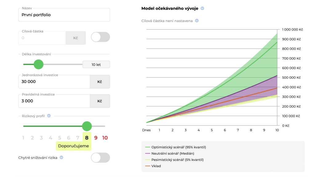 Ukázka návrhu vygenerovaného potenciálního portofolia přímo na míru.