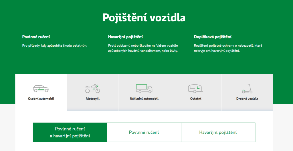 Tyto pojišťovny nabízejí různé balíčky povinného ručení, které se liší podle pojistných limitů, připojištění, jako je např. pojištění skel, právní ochrana nebo asistenční služby. Ceny se mohou značně lišit v závislosti na tom, jaké krytí si člověk nakonec vybere a jaký bonus za bezškodní průběh má.