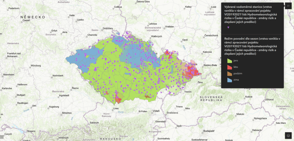 Mapu záplavových oblastí nabízí také portál ČHMÚ – hydrometeorologický ústav umožňuje prohlídnout si například mapu povodní dle ročních období (sezón) či podle výše rizika.