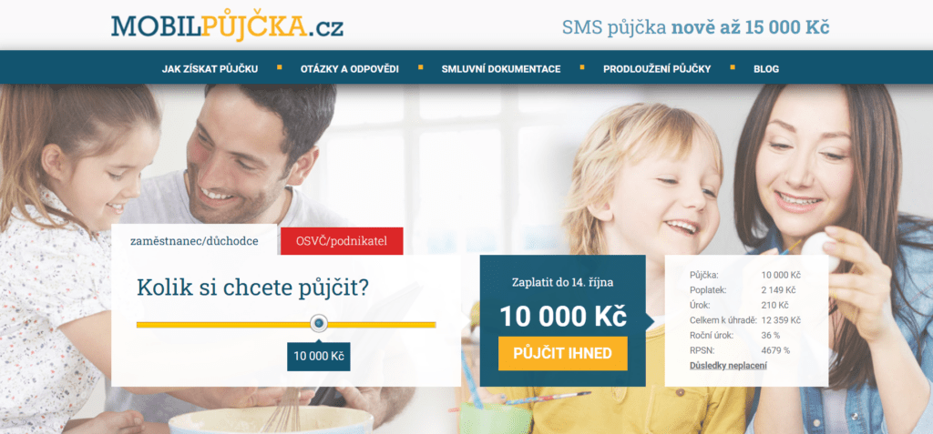 Mobilpůjčka.cz nabízí SMS půjčku až do výše 15 000 Kč.
