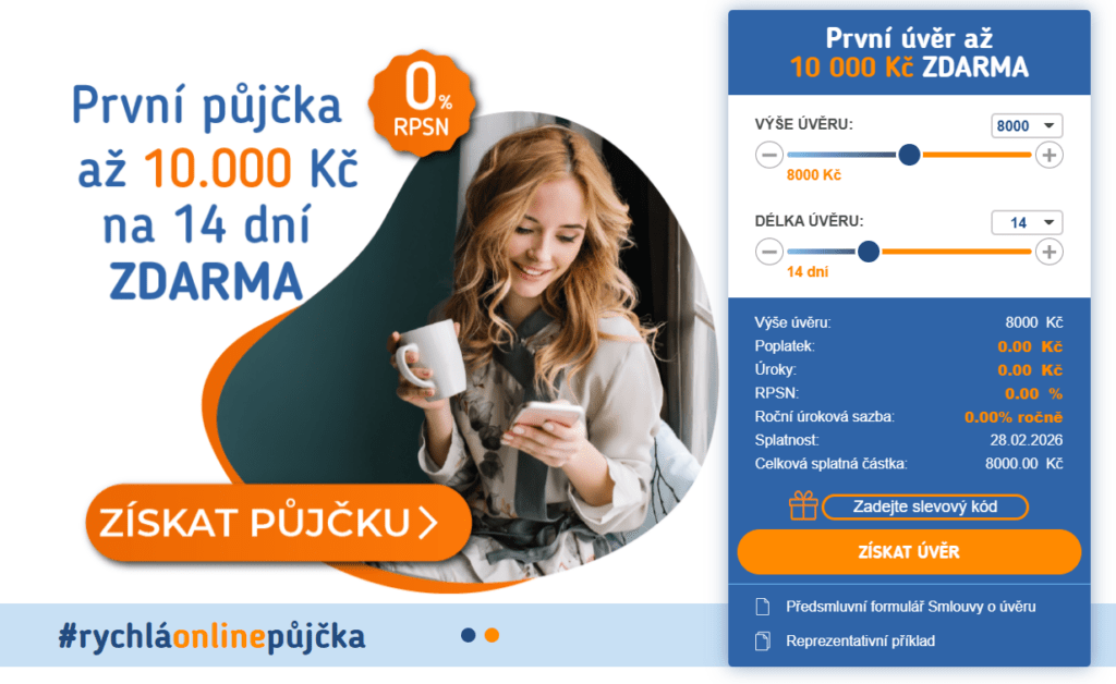 Podmínka: Půjčka je zdarma pouze v případě, že ji klient splatí přesně v den splatnosti.