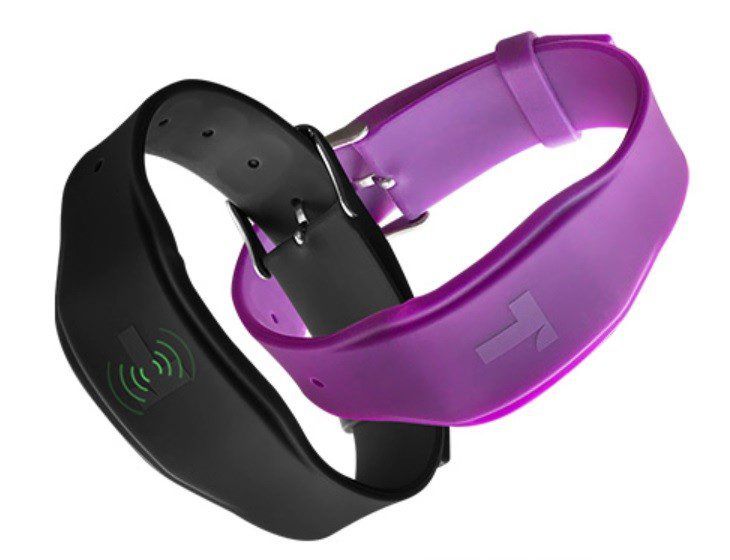 Twisto platební náramek je k dispozici v černé a fialové barvě.
