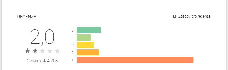 Aplikace Účtenkovka má momentálně 2 hvězdičky z 5. Většina kritiky dopadá na nefunkčnost automatického čtení účtenek.